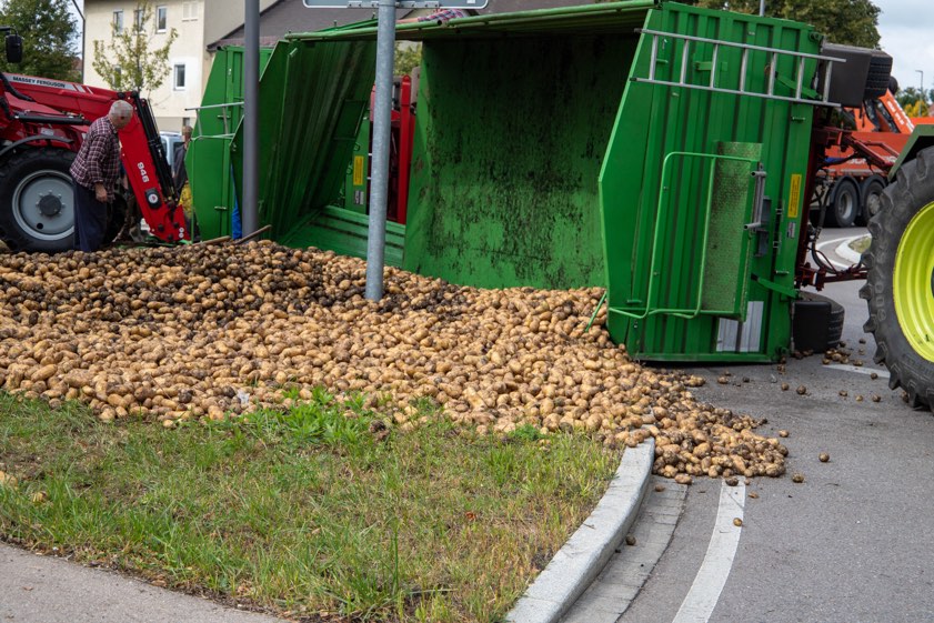 Der so genannte Kartoffel-Kreisel machte seinem Namen alle Ehre. Zwei Anhänger mit Kartoffeln stürzten um.