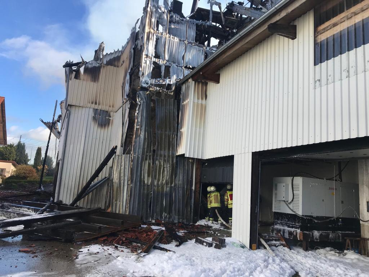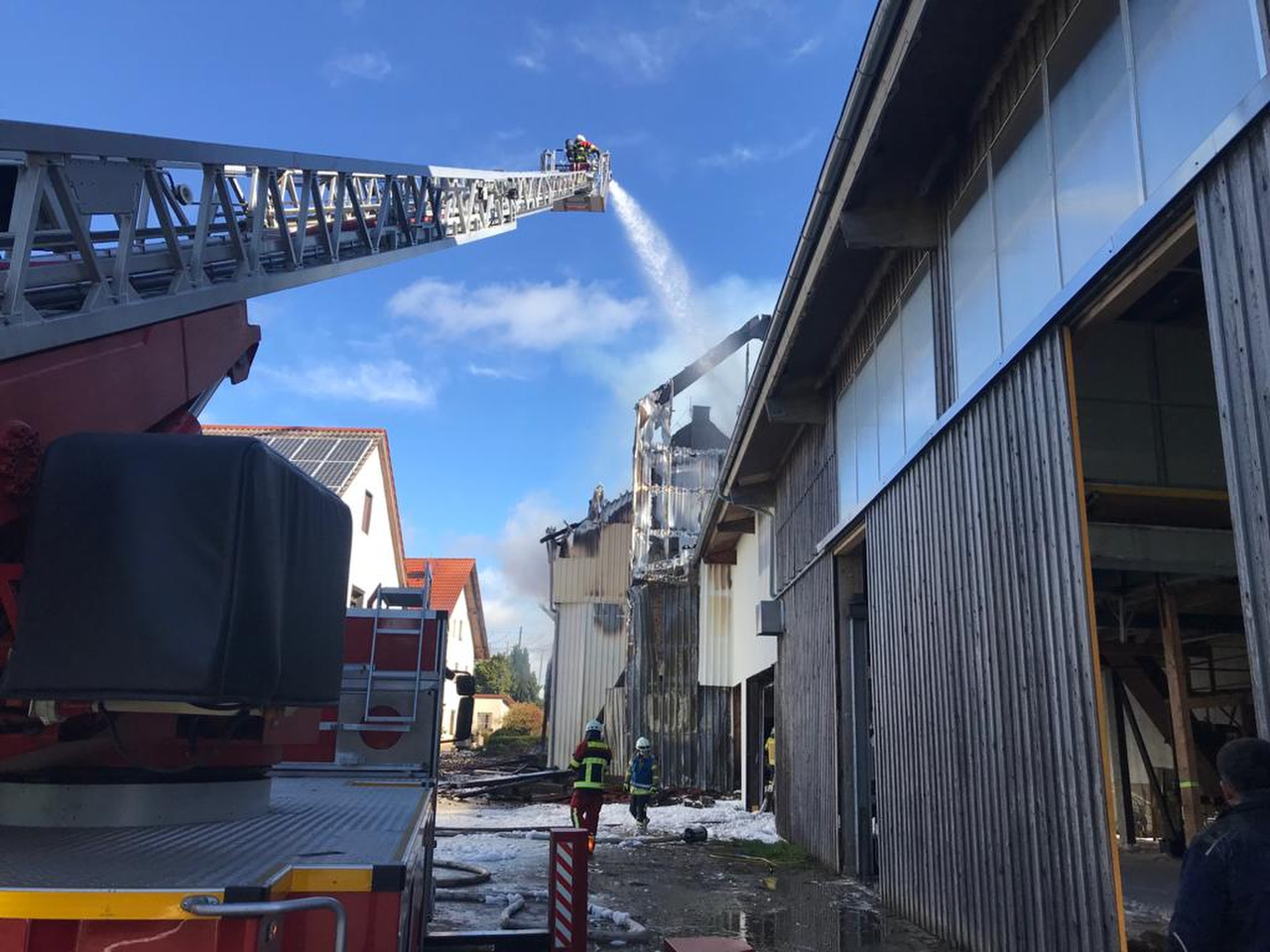 Den ungefähr 200 Einsatzkräften von Feuerwehr und Technischem Hilfswerk (THW) sei es gelungen, das direkt angrenzende Wohnhaus sowie weitere Gebäude vor den Flammen zu schützen. "Dennoch entstand nach ersten Einschätzungen ein Sachschaden von etwa einer Million Euro", erklärte ein Sprecher des Polizeipräsidiums Oberbayern-Nord am Nachmittag. Die Floriansjünger werden wohl noch etliche Stunden im Einsatz sein.