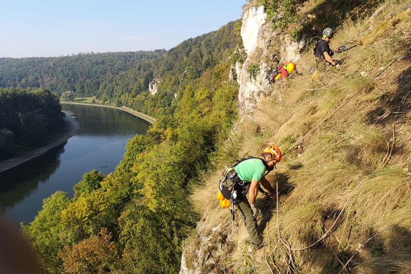 Höhenarbeiter Armin Ilgenfritz bestätigte: "Der Donaudurchbruch mit seinen steilen Felsen ist schon ein außergewöhnlicher Arbeitsplatz." In den steilen Felsen, direkt über der Donau oder der Wege hängend, zu arbeiten, ist seinen Worten zufolge "aber auch für uns eine besondere Herausforderung". Finanziert wurden diese besonderen Arbeiten nach Angaben des VöF über die Naturschutz-Behörden aus Mitteln des bayerischen Staatsministeriums für Umwelt und Verbraucherschutz.