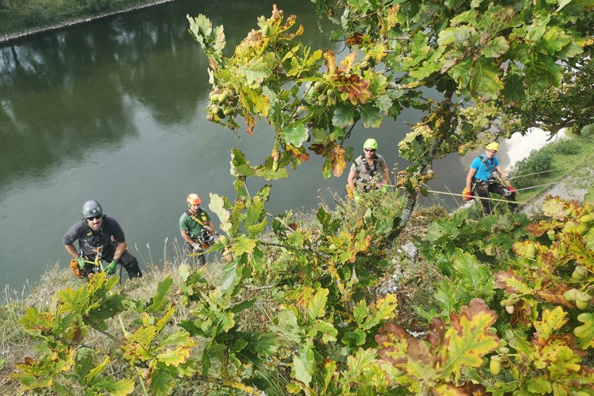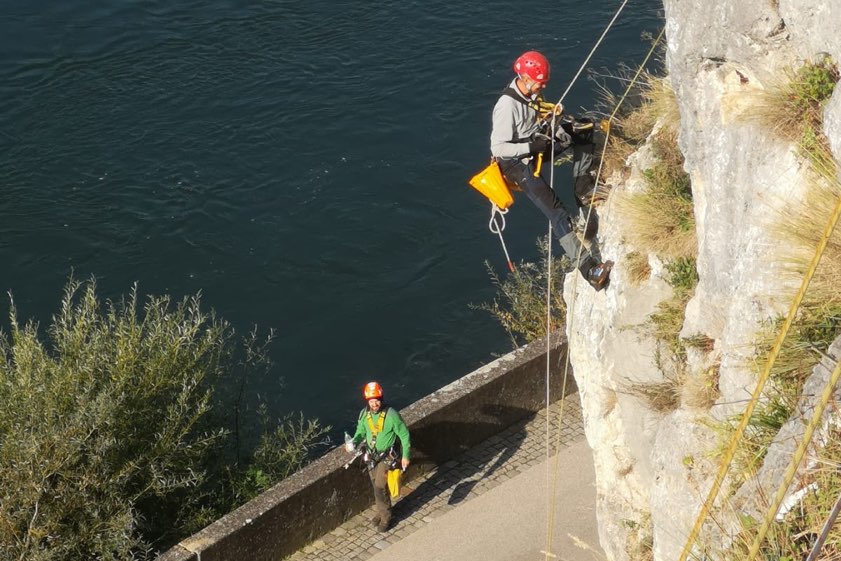 Spektakuläre Arbeiten im Naturschutz-Gebiet "Weltenburger Enge". Kletterer stellten ausgewählte Felsformationen frei.