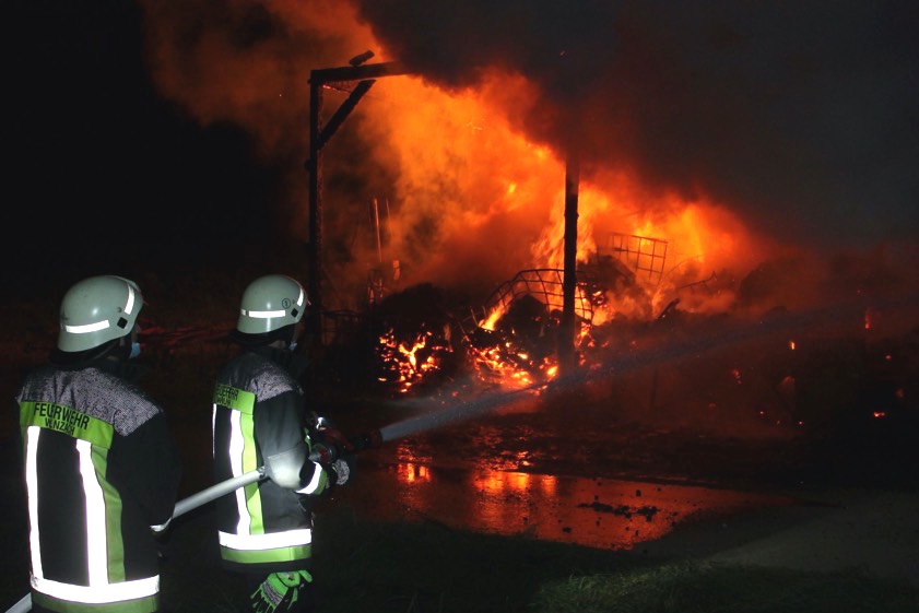 Eine Sprecherin des Polizeipräsidiums Oberbayern-Nord hatte – wie berichtet – am Samstagnachmittag gegenüber unserer Zeitung erklärt, dass einem Verkehrsteilnehmer, der auf der Autobahn A93 unterwegs gewesen ist, der nächtliche Feuerschein aufgefallen war. Daraufhin hatte er den Brand bei der integrierten Leitstelle gemeldet. Die Feuerwehren aus Wolnzach und Gebrontshausen wurden nach eigenen Angaben dann am Samstagmorgen um 2.43 Uhr alarmiert. "Bereits auf der Anfahrt wurde das Feuer gesichtet", berichtete Thomas Kerndl von den Wolnzacher Floriansjüngern.