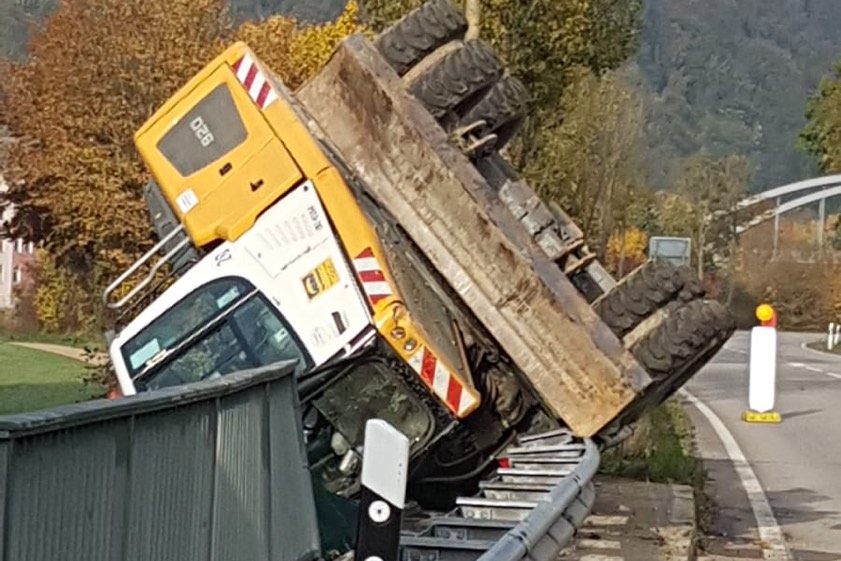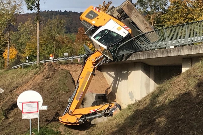 Malheur bei Bauarbeiten in Riedenburg. Fahrer (36) blieb unversehrt, Höhe des Schadens noch unklar.