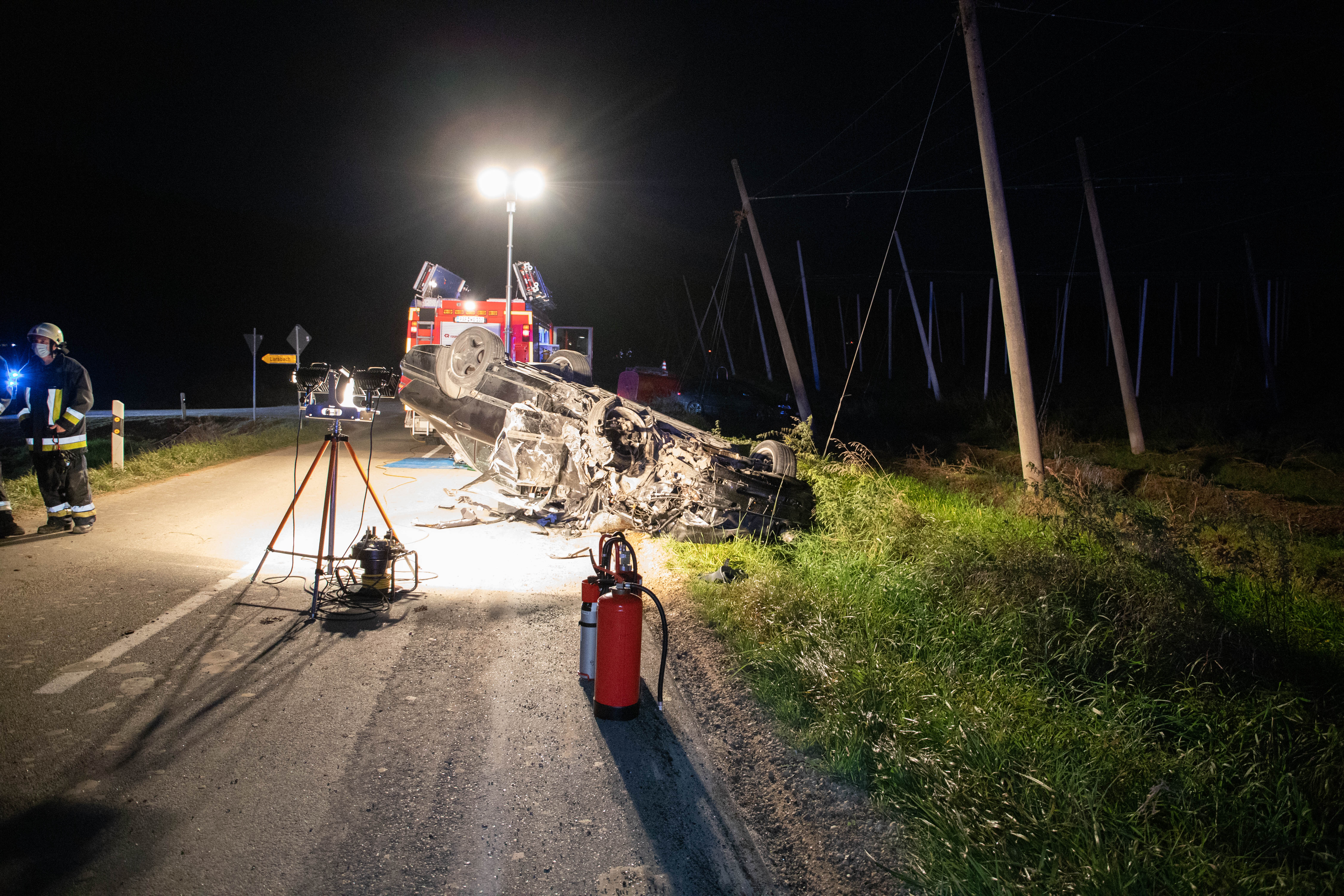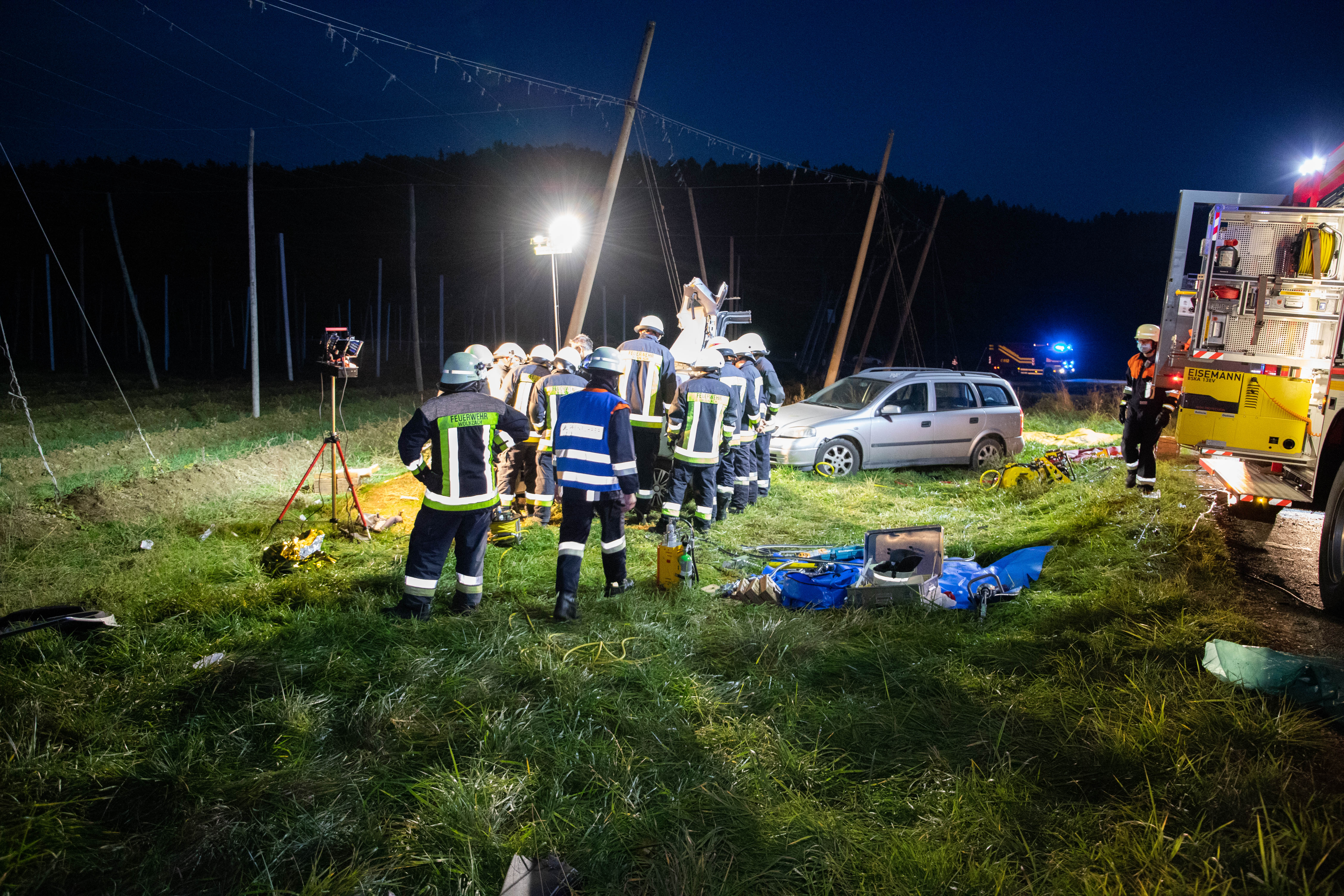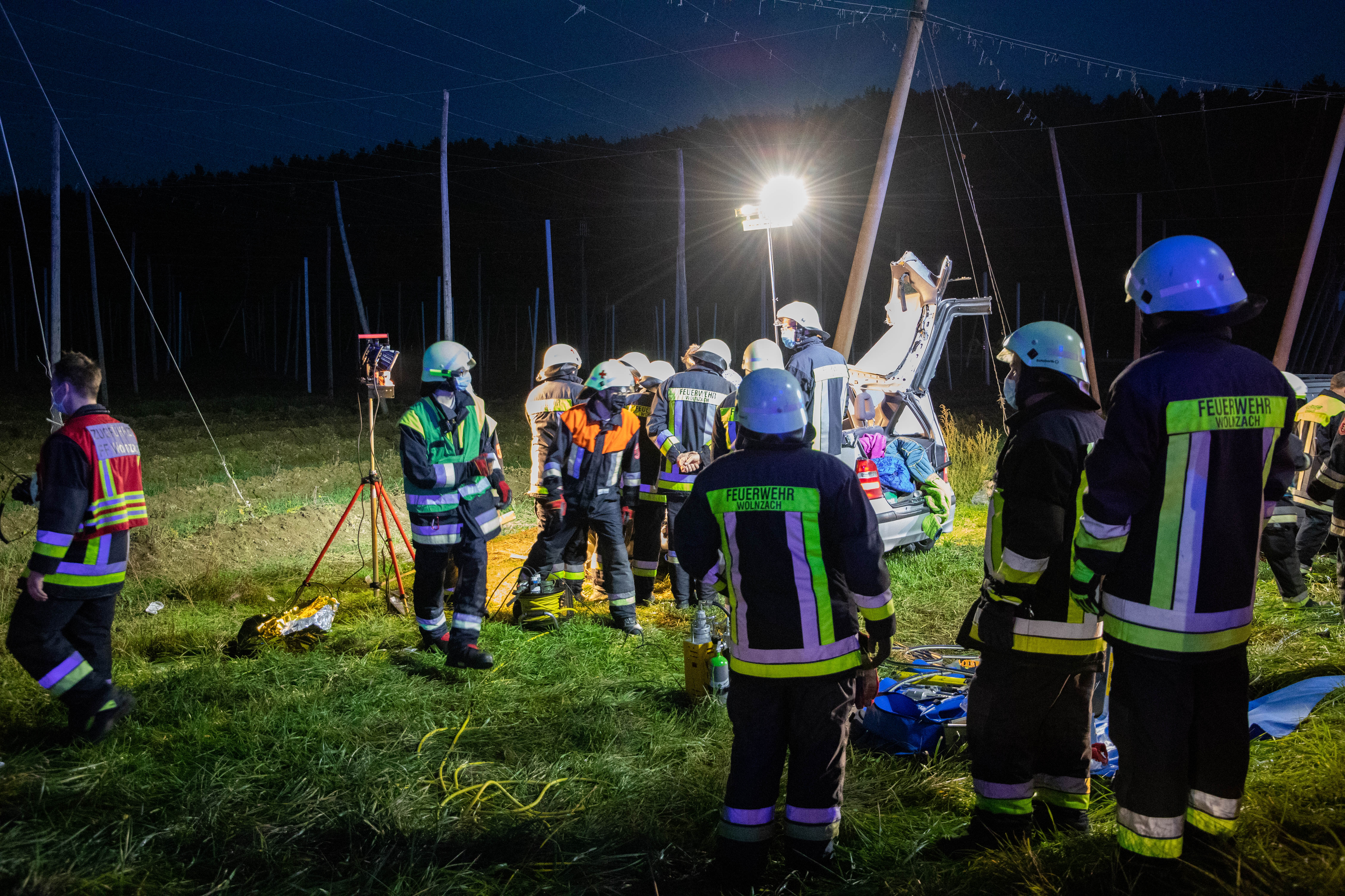 An der Unglücksstelle tätig waren die Feuerwehren auf Wolnzach, Larsbach und Rohrbach; außerdem angerückt waren – neben der Polizei – auch Einsatzkräfte des Rettungsdiensts aus Pfaffenhofen, Geisenfeld, Mainburg und Nandlstadt, darüber hinaus zwei Notarzt-Fahrzeuge sowie die beiden Rettungs-Hubschrauber aus Ingolstadt und Augsburg. Die Floriansjünger aus Wolnzach und Larsbach übernahmen auch die Ausleuchtung der Unfallstelle beziehungsweise die Umleitung des Verkehrs.