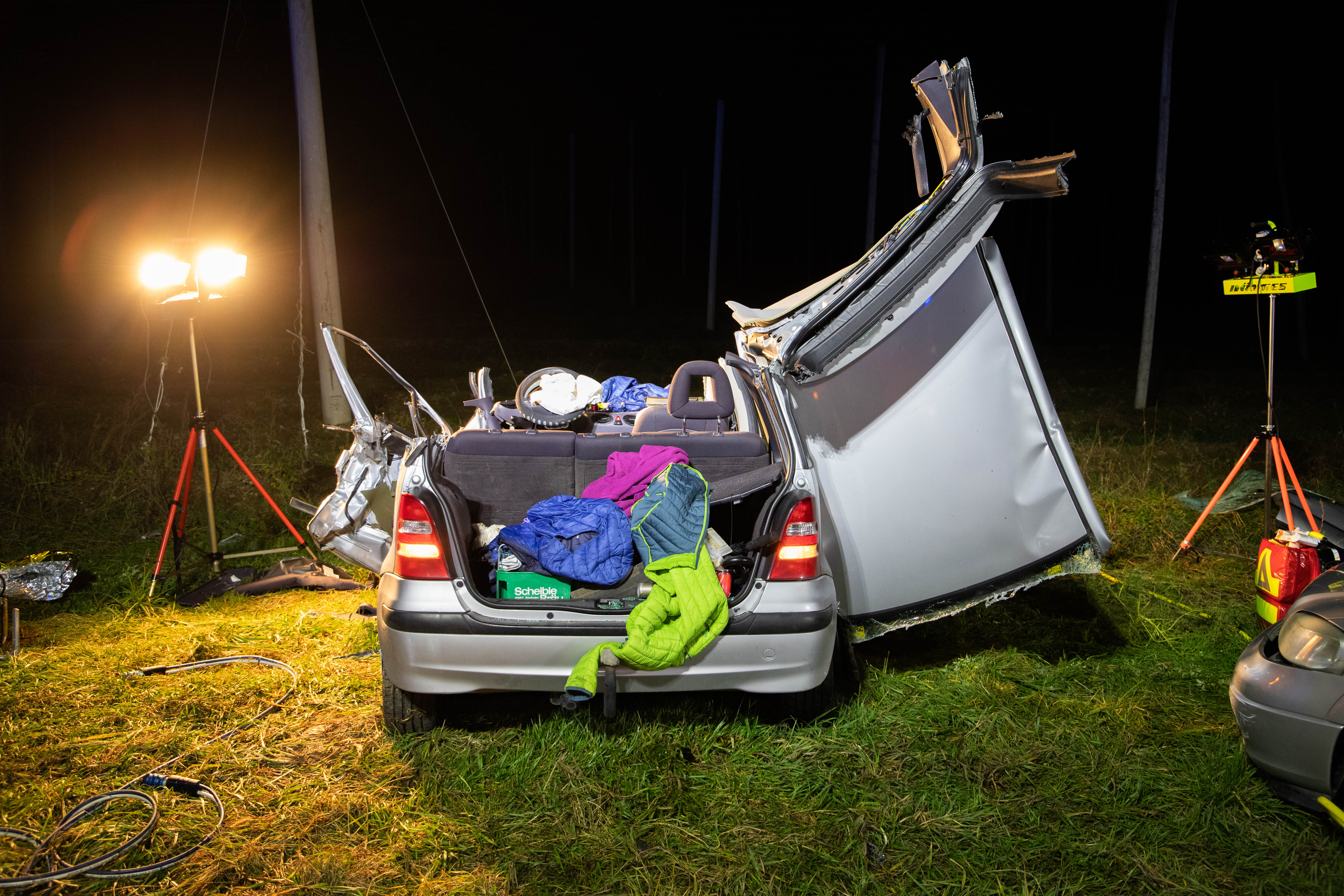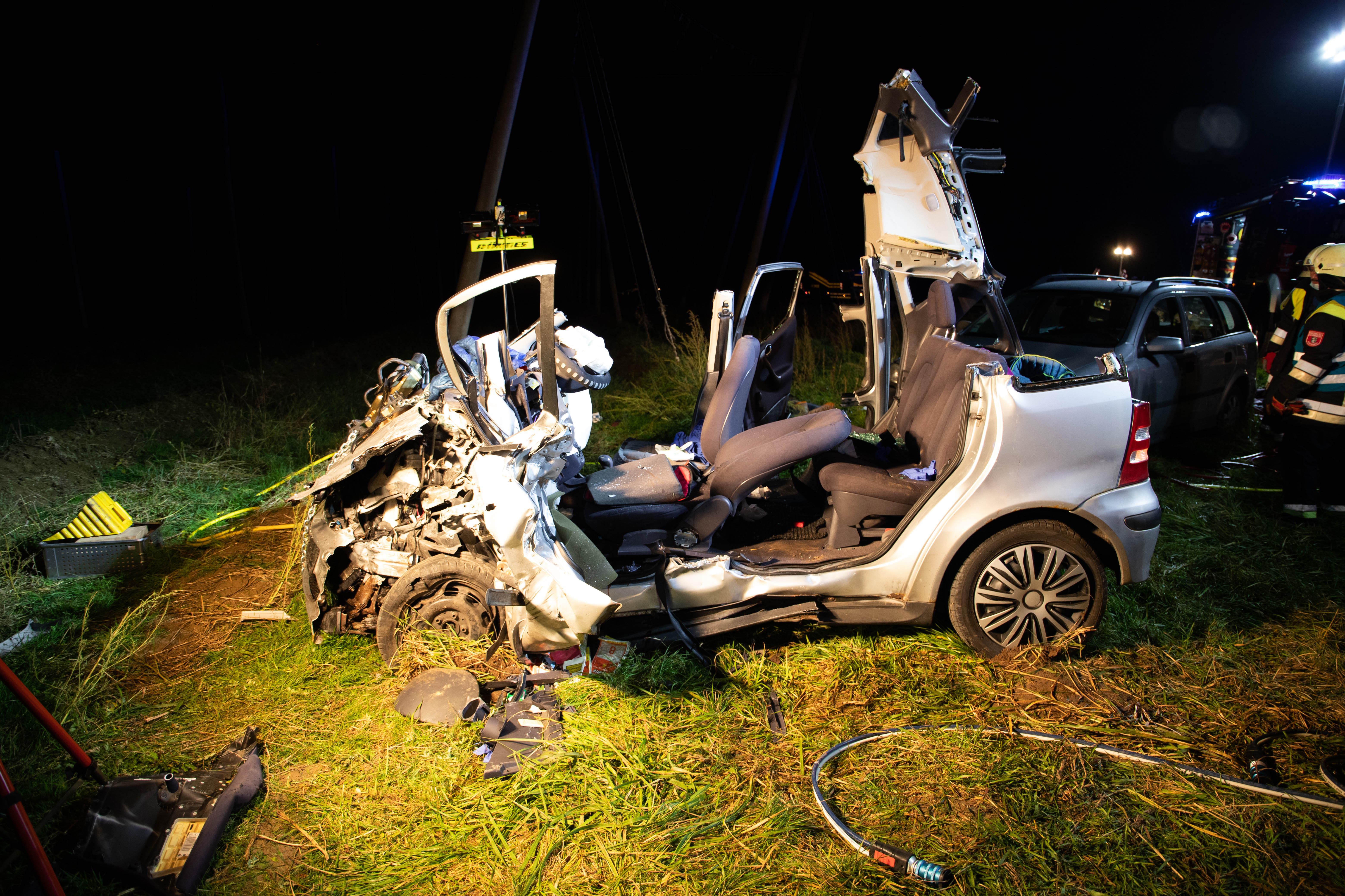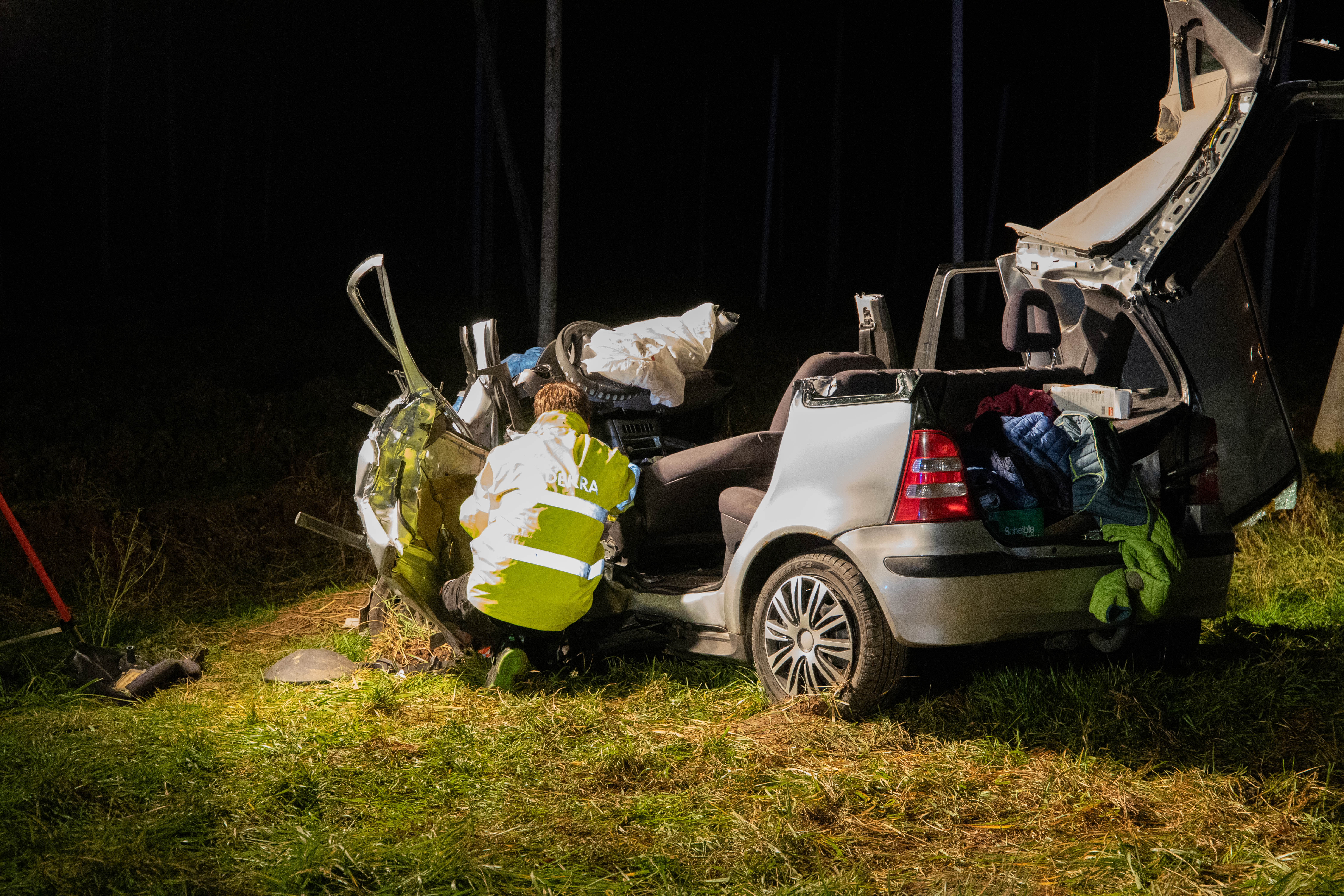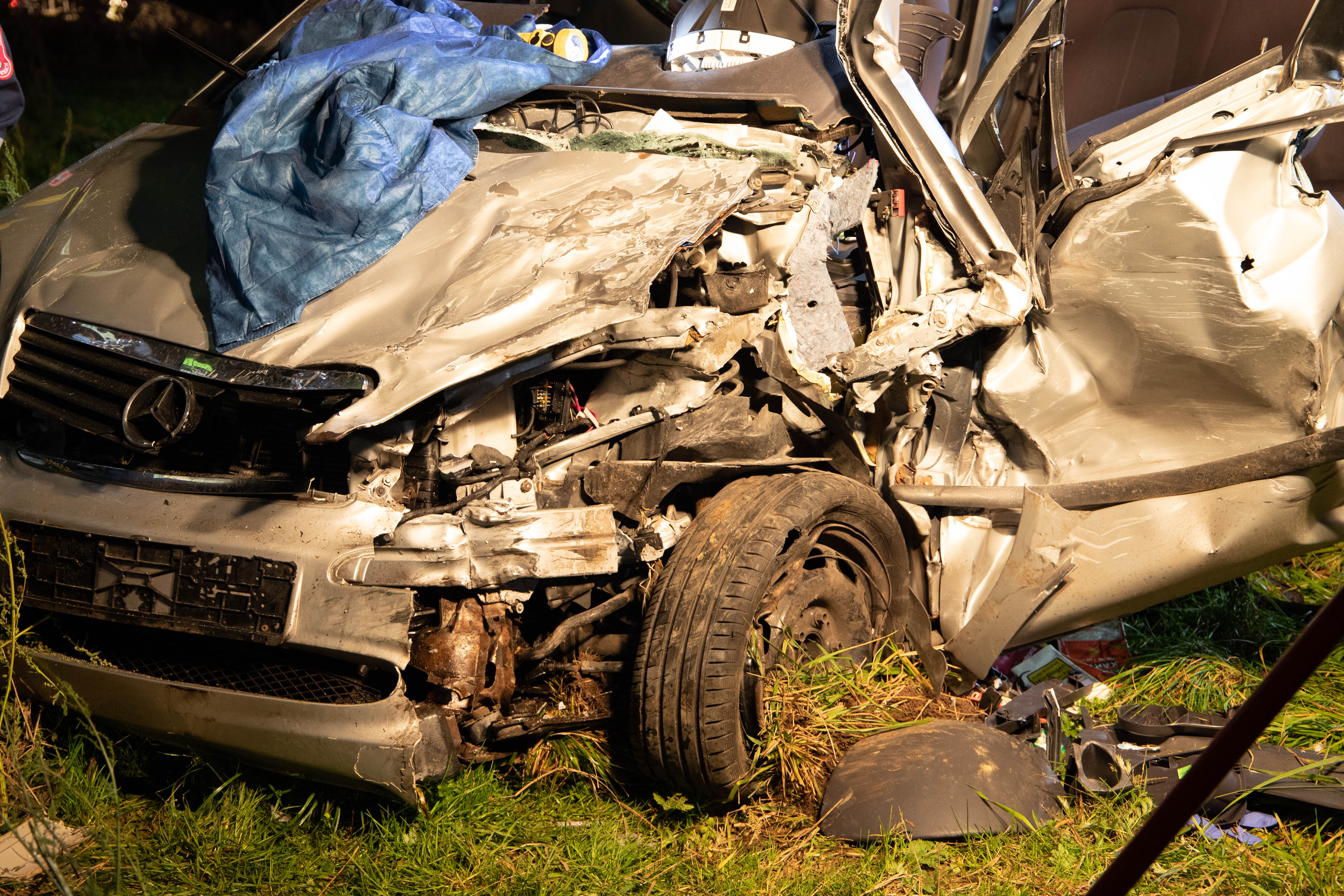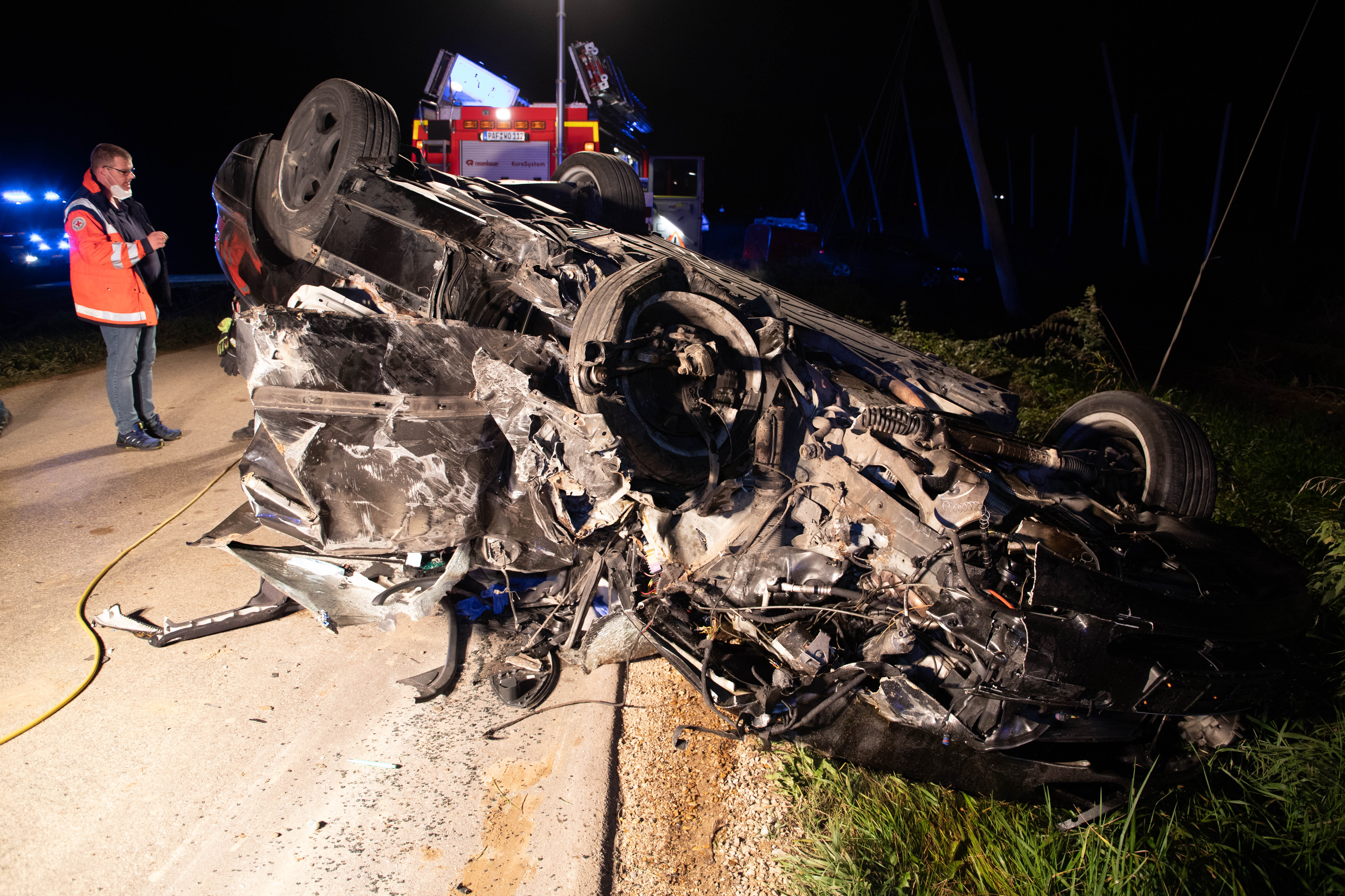 In diesem entgegenkommenden Wagen (Mercedes A-Klasse) befand sich laut Polizei ein Ehepaar aus dem Landkreis Donau-Ries. Dieses Auto sei nach dem Crash in einer Grünfläche neben der Kreisstraße zum Stillstand gekommen. Die beiden Insassen, der 72 Jahre alte Fahrer sowie dessen gleichaltrige Ehefrau, seien in dem Wrack eingeklemmt worden. Sie erlitten nach Angaben der Polizei jeweils schwere Verletzungen. Der Pkw des Unfall-Verursachers sei mehr als 70 Meter vom Anstoßpunkt entfernt auf dem Dach liegen geblieben. Auch der 18-Jährige sei in seinem völlig demolierten Auto eingeklemmt worden und habe schwere Verletzungen erlitten.