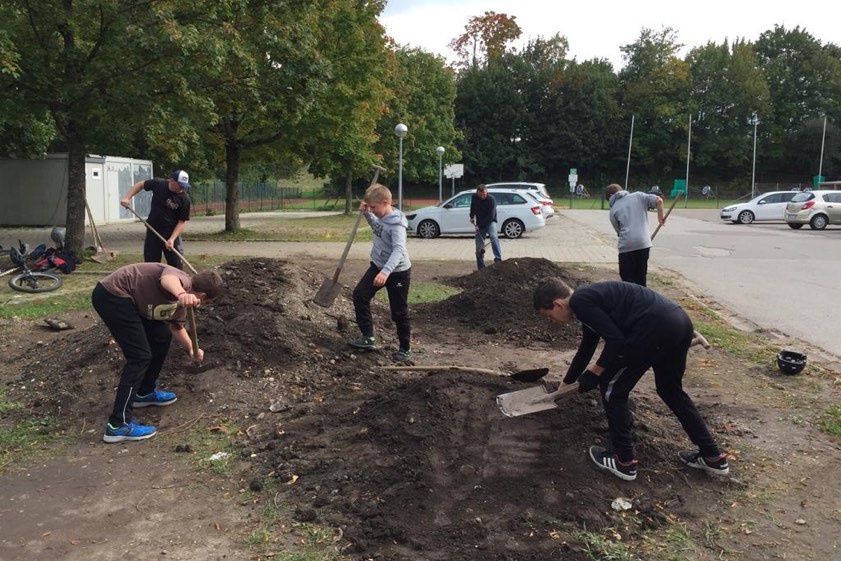 Auf Initiative der Jugend-Beauftragten Anna Schrag griffen Kinder und Eltern zur Schaufel. Heraus kam ein Fahrrad-Parcours.