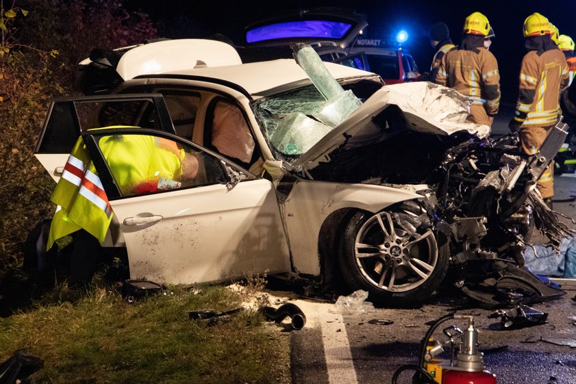 Die Wucht des Aufpralls war jedenfalls nach Angaben der Polizei so stark, dass der Ford-Lenker (38) und auch der BMW-Lenker (35) in ihren Fahrzeugen eingeklemmt wurden und noch an der Unfallstelle starben. Der 25 Jahre alte VW-Fahrer habe bei dem Unfall schwere Verletzungen erlitten, er sei vom Rettungsdienst zur weiteren Behandlung in ein Krankenhaus gebracht worden. Nach Angaben des Polizeipräsidiums Oberbayern-Nord entstand an den drei beteiligten Fahrzeugen jeweils ein Totalschaden.