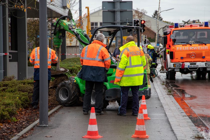 Größerer Einsatz heute Mittag an der Pöttmeser Straße. Strafverfahren gegen Bagger-Fahrer eingeleitet.