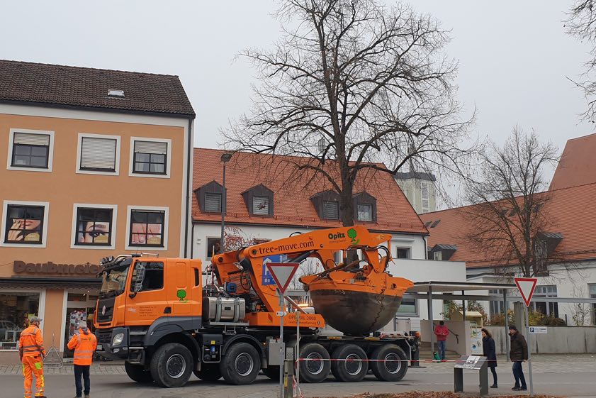 Weiter heißt es aus dem Rathaus in diesem Zusammenhang: "Aus diesem Grund ist es sinnvoller, einen alten Baum zu erhalten, anstatt einen neuen Baum anzupflanzen, der Jahrzehnte brauchen würde, um die Funktionen des alten Baumes erfüllen zu können." Ermöglicht werde die Verpflanzung der großen Sommerlinde mitsamt dem lebensnotwendigem Wurzelwerk durch die so genannte Rundspaten-Technik. Eine Firma aus Franken habe sich darauf spezialisiert, im Inland und auch im Ausland solche Großbäume mit Hilfe von Spezial-Maschinen an neue Standorte umzupflanzen.