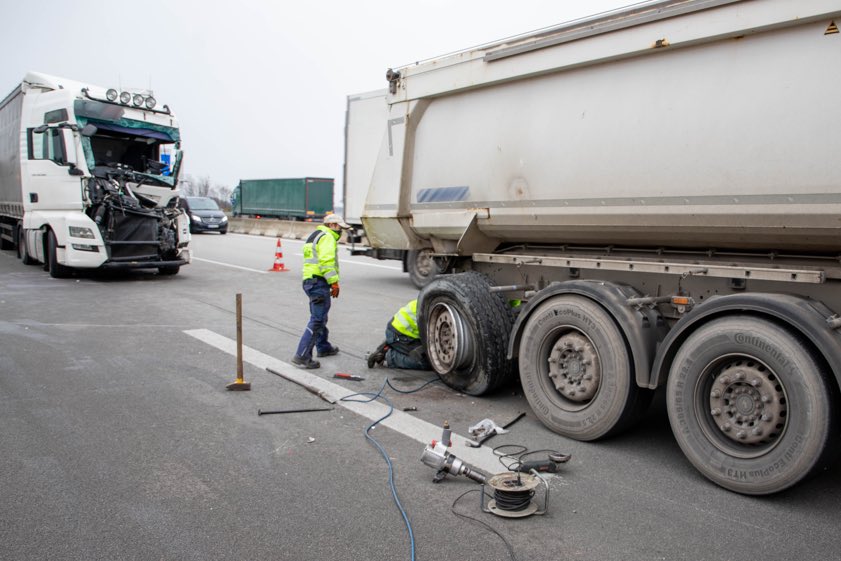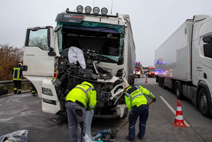 Ukrainer krachte mit 40-Tonner ins Heck eines Kippers. Autobahn in Richtung Süden zeitweise komplett gesperrt, langer Stau.