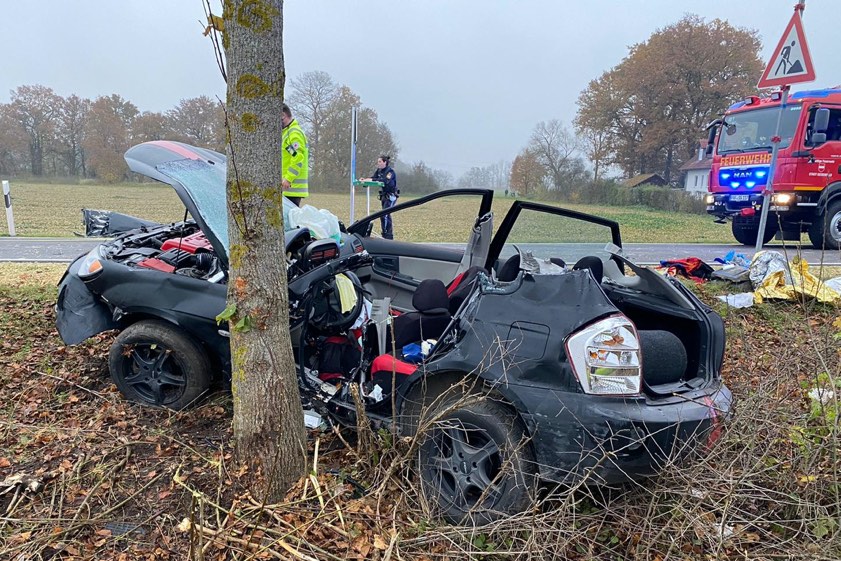 Nach ersten Informationen geriet ein Pkw auf der Staatsstraße 2232 ins Schleudern und prallte dann frontal gegen einen Baum.