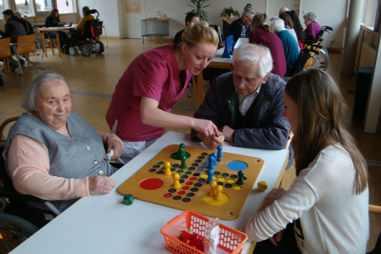 Jung und Alt zusammenzubringen und Jugendliche für soziales Engagement zu gewinnen – das ist die Idee, die hinter diesem Projekt steht, das inzwischen schon über zehn Jahre läuft. Die Erwartungen haben sich erfüllt. „Die Jugendlichen sind nicht nur begeistert und mit viel Spaß bei der Sache“, sagt Gesa Minkenberg, „sie lernen auch, sich auf Menschen einzustellen, die ein ganz anderes Leben führen als sie. Dazu braucht es Rücksichtnahme und Einfühlungsvermögen.“ Diese Erfahrung hat auch Ida (16) gemacht: „Mit den Senioren zu spielen ist ganz anders, als mit meinen Freunden. Hier ist der Spaß wichtiger als das Gewinnen.“