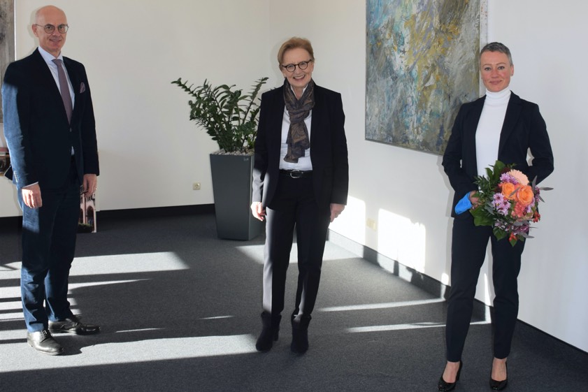 (ty) Ihren Dienst als Regierungs-Vizepräsidentin von Oberbayern hatte Sabine Kahle-Sander bereits Anfang des Monats offiziell angetreten. Im kleinen Rahmen hat Regierungs-Präsidentin Maria Els sie nun aber noch offiziell bei der Regierung von Oberbayern begrüßt und gleichzeitig den Vorgänger Walter Jonas verabschiedet (Foto oben), der, ebenfalls mit Wirkung vom 1. November, zum Präsidenten des bayerischen Landesamts für Gesundheit und Lebensmittel-Sicherheit (LGL) ernannt worden ist. Das LGL ist nicht zuletzt angesichts der Corona-Krise in den Fokus der Öffentlichkeit gerückt.