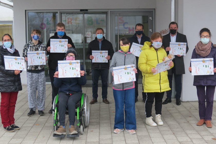 (ty) Alle 64 Klassen und Gruppen des heilpädagogischen Zentrums in Pfaffenhofen und Geisenfeld können sich auch in diesem Jahr wieder über ein Exemplar des begehrten Adventskalenders vom Lions-Club Pfaffenhofen-Hallertau freuen. Der Pfaffenhofener Landrat Albert Gürtner (FW) überreichte die Kalender in Begleitung von Vertretern des Fördervereins und der Bildungsstätte an Schülerinnen und Schüler der Adolf-Rebl-Schule (Foto oben). Jeder Kalender trägt eine individuelle Glücksnummer, hinter den 24 Türchen verbergen sich – wie berichtet – heuer Preise im Gesamtwert von insgesamt mehr als 50 000 Euro.