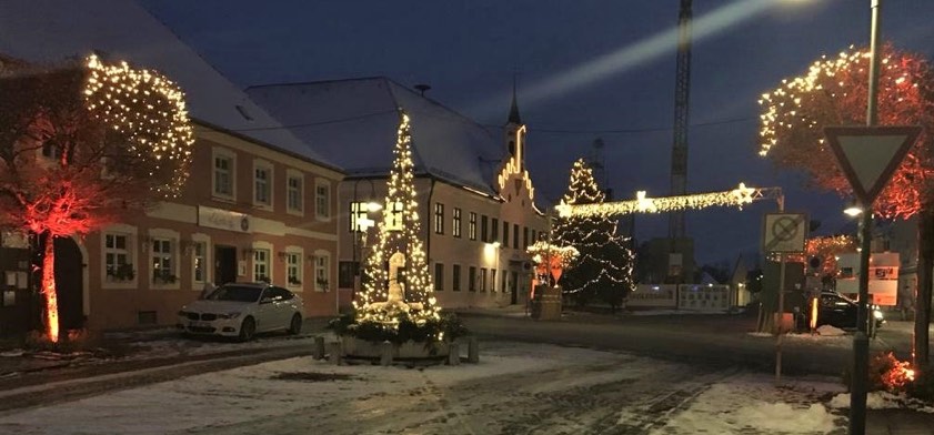 Herzstück der Dekoration ist den Angaben zufolge, wie immer, das Rathaus mit dem großen Christbaum davor. Hinzu kamen allerdings in diesem Jahr noch etliche Leucht-Elemente in Bäumen, eine Lichterkette über der Einfahrt zum Marktplatz, bunte LED-Spots sowie ein LED-Weihnachtsbaum über dem historischen Brunnen. "Bereits an den ersten Tagen wurde die neue Weihnachts-Beleuchtung von vielen Passanten und Autofahrern bewundert", erklärte ein Sprecher der Gemeinde-Verwaltung.