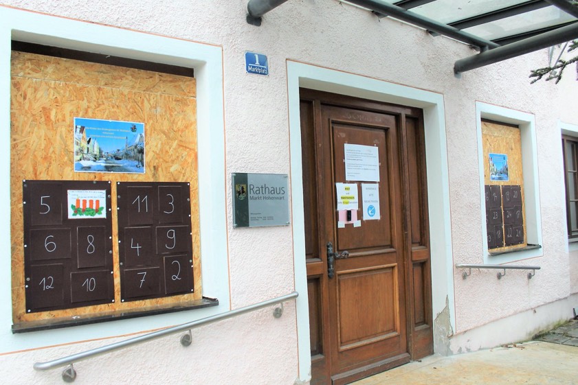 (ty) Auch die Buben und Mädchen vom Kindergarten "St. Wolfoldus" sowie die Sprösslinge aus der Mittagsbetreuung der Hohenwarter Grund- und Mittelschule wollten ihren Teil zu einer gelungenen Adventszeit beitragen. So wurde zuletzt ziemlich fleißig gemalt. Mit Unterstützung der Gemeinde-Verwaltung entstand aus diesen Werken dann ein exklusiver Adventskalender, der jetzt für alle Interessierten an der Rathaus-Fassade besichtigt werden kann. Hinter jedem Türchen verbirgt sich ein weihnachtliches Bild eines kleinen Künstlers.