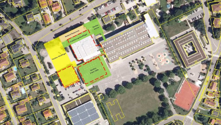 In der Sitzung war eine erste Kosten-Schätzung für das Großprojekt "Neubau der Realschule mit Sporthalle und Mensa" vorgestellt worden. Wie Kreiskämmerer Walter Reisinger mitteilte, ergeben sich für das Gesamt-Vorhaben fünf Kostenblöcke, die unterschiedlich zu betrachten sind: Der Neubau der Schule würde demnach mit zirka 40 Millionen Euro zu Buche schlagen, die Sanierung des Bestands-Gebäudes mit etwa 3,1 Millionen Euro. Für den Neubau der Mensa rechnet man momentan mit um die 5,7 Millionen Euro und für den Neubau einer Dreifach-Sporthalle mit 11,1 Millionen Euro. Die Anbindung der Sporthalle an die Grund- und Mittelschule wird auf 800 000 Euro geschätzt. Unterm Strich geht es also um rund 60,7 Millionen Euro.