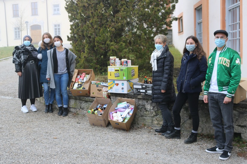 (ty) Schülerinnen und Schüler aus verschiedenen Klassen und Jahrgangsstufen der FOS und BOS in Scheyern hatten sich beim Klassensprecher-Seminar im Oktober dieses Jahres zu einer "Sozial-AG" zusammengefunden und die Weihnachts-Spenden-Aktion für heuer in Absprache mit der Schülermitverantwortung (SMV) und der Schul-Leitung selbstständig organisiert. Lehrer und Schüler haben sich an der Aktion beteiligt und zahlreiche haltbare Lebensmittel sowie Hygiene-Artikel gesammelt sowie diese mittlerweile an die "Tafel" von Pfaffenhofen übergeben. Auf dem Foto oben, von links: Betül Analay, Elana Farda, Lena Franz, Anne Bienlein von der "Tafel" in Pfaffenhofen, Alexandra Lang und Lukas Gmelch.