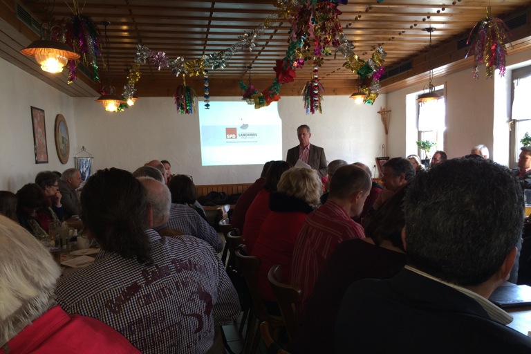Kritik übte der SPD-Kreisvorsitzende auch am hiesigen CSU-Landtagsabgeordneten Karl Straub. Dessen größte Leistung besteht laut Käser darin, „dass er es in so kurzer Zeit geschafft hat, mit den politischen Rotationen seines Parteivorsitzenden mitzuhalten“, stichelte Käser und führte dazu aus: Straub habe 2011 gesagt, er wolle die Stimmkreisreform nicht, und habe kurz darauf in München klein beigegeben, als man ihm offenbar die Systematik zur Verteilung von Mandaten erklärte habe. Straub habe außerdem auf Facebook das Video des damaligen Gesundheitsministers Markus Söder mit den Worten „Wir haben die Kinderstation“ geteilt – und es umgehend wieder gelöscht, als er gemerkt habe, dass das Video zum Bumerang werden könnte, so Käser.