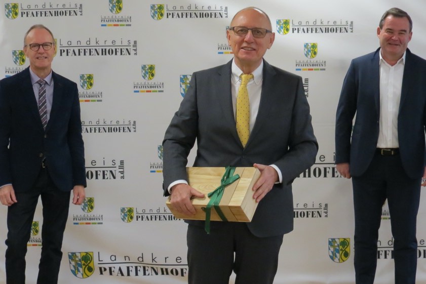 (ty) 26 Jahre lang hatte Peter Roith (Foto oben, Mitte) das Pfaffenhofener Medien-Zentrum geleitet. Landrat Albert Gürtner (rechts) und Peter Sauer (links), Leiter des Sachgebiets "VHS, Kultur" am Landratsamt, haben ihn kürzlich in den Ruhestand verabschiedet. "Wir lassen Sie natürlich nur ungern gehen. Aber nach so vielen Jahren engagierte Tätigkeit für den Landkreis Pfaffenhofen haben Sie sich Ihren Ruhestand mehr als verdient", so Gürtner an die Adresse von Roith.