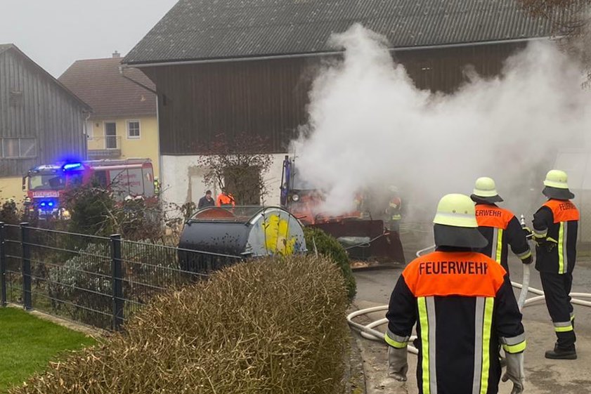 Wie die Polizei berichtet, fuhr ein Mann mit dem Lader aus seinem Schuppen heraus, dann stiegen aus dem Motor-Bereich der Arbeitsmaschine plötzlich Flammen auf. "Das Feuer griff im weiteren Verlauf auf die Fahrerkabine, welche komplett ausbrannte, über", fasst ein Polizei-Sprecher zusammen. Die Feuerwehr musste anrücken, um das brennende Gefährt zu löschen. Die Beamten gehen von einem technischen Defekt als Ursache aus.