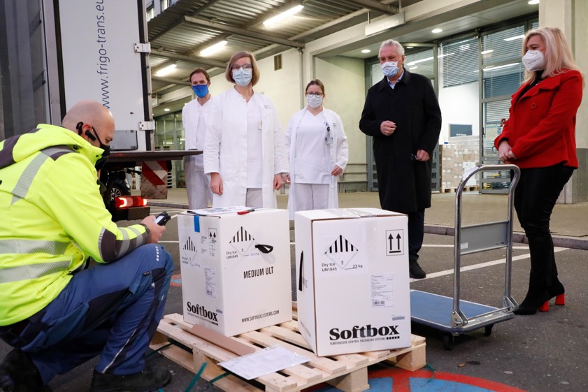 Ministerin Huml, die selbst ausgebildete Ärztin ist, fügte hinzu: "Gemäß den Vorgaben der Arzneimittel-Zulassung des Impfstoffs dürfen pro Fläschchen fünf Impfdosen entnommen werden." Für eine Nachverfolgung der Temperatur in der Kühlkette sei jedes Transport-Behältnis zusätzlich mit sogenannten Temperatur-Datenloggern ausgestattet. "Wir wollen jedes einzelne Impfstoff-Fläschchen schnellstmöglich zu den Impfberechtigten bringen, um denjenigen Schutz zu bieten, die ihn jetzt am dringendsten benötigen", so Huml.