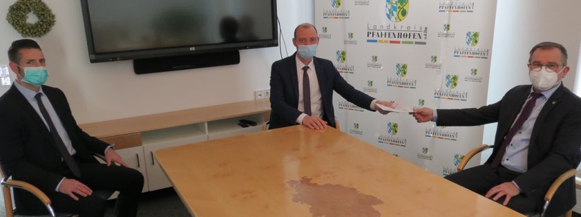 Vize-Landrats Karl Huber (rechts) und der Beteiligungs-Manager des Landkreises, Christian Degen, (links) mit dem Geschäftsführer der Ilmtalklinik-GmbH, Ingo Goldammer. Foto: Landratsamt Pfaffenhofen