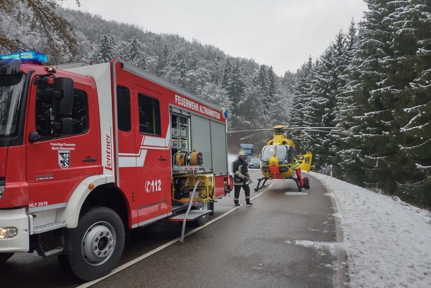 Neben dem Rettungsdienst und den Polizeibeamten waren auch die Feuerwehren aus Altmannstein und Hagenhill vor Ort. "An der Straßensperre am Kreisverkehr ereignete sich ein anderer Zwischenfall", berichten die Floriansjünger aus Altmannstein auf ihrer Facebook-Seite: "Unsere Feuerwehrmänner wurden um Haaresbreite von den herabstürzenden Eisplatten eines vorbeifahrenden Lkw getroffen."
