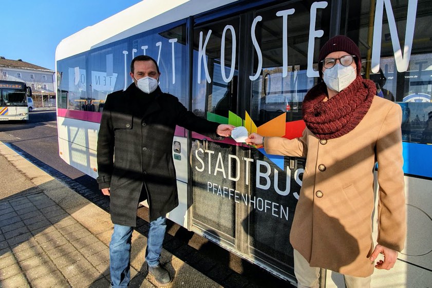 Die Pfaffenhofener Stadtwerke freuen sich über die Zuwendung der Pfaffenhofener Apotheke: "Durch die Unterstützung von Herrn Schultes können wir für die Anfangszeit der neuen Verordnung unseren Fahrgästen helfen, sollten diese ihre Maske vergessen haben oder noch keine besitzen", so Alexander Schneider von den Stadtwerken. Die FFP2-Masken würden im Bedarfsfall direkt vom Stadtbus-Fahrer ausgehändigt. Lesen Sie dazu auch: Hintergründe und Infos zur FFP2-Masken-Pflicht in Bayern ab Montag