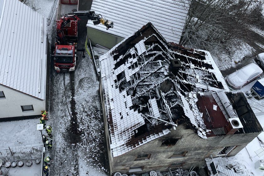 Wohnhaus geriet heute Morgen in Flammen. Ursache noch unklar, Kripo ermittelt. 200.000 Euro Schaden, Gebäude einsturzgefährdet.