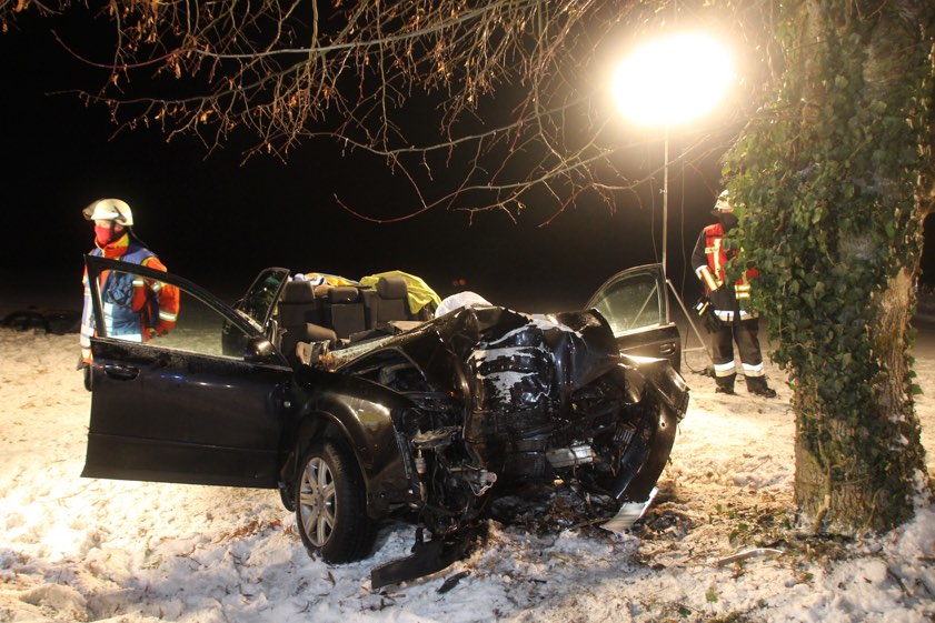 (ty) Im Gemeinde-Bereich von Hemau (Landkreis Regensburg) hat sich am späten gestrigen Abend ein folgenreicher Verkehrsunfall ereignet. Wie die Polizei heute berichtete, kam ein 31 Jahre alter Pkw-Lenker, der zwischen den Ortsteilen Thonlohe und Albertshofen unterwegs war, mit seinem Audi von der Fahrbahn ab. Der Wagen sei daraufhin frontal gegen einen Baum gekracht. Der Verunglückte habe von den angerückten Feuerwehrleuten aus dem Wrack befreit werden müssen.