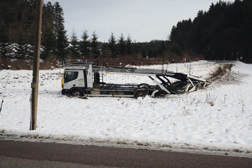 In der Nacht zum heutigen Mittwoch hat es in der Gemeinde Hettenshausen gescheppert. Dieser Unfall ereignete sich gegen 0.10 Uhr kurz vor Entrischenbrunn. Laut Polizei war ein 36-Jähriger mit seinem Autotransporter – Lkw samt Anhänger – auf der PAF6 von Schweitenkirchen in Richtung Hettenshausen unterwegs, als sein Gespann wegen nicht angepasster Geschwindigkeit und bei Glatteis in einer starken Rechtskurve geradeaus über die Gegenspur rutschte. Es habe eine Warnbake am linken Straßenrand überfahren und sei die Böschung hinuntergerauscht. Nach 100 Metern sei das Gespann in einer Wiese zum Stehen gekommen. Verletzt wurde niemand. Der Schaden am Transporter wird auf 4000 Euro geschätzt; zur Höhe des Flurschadens liegen noch keine Angaben vor.