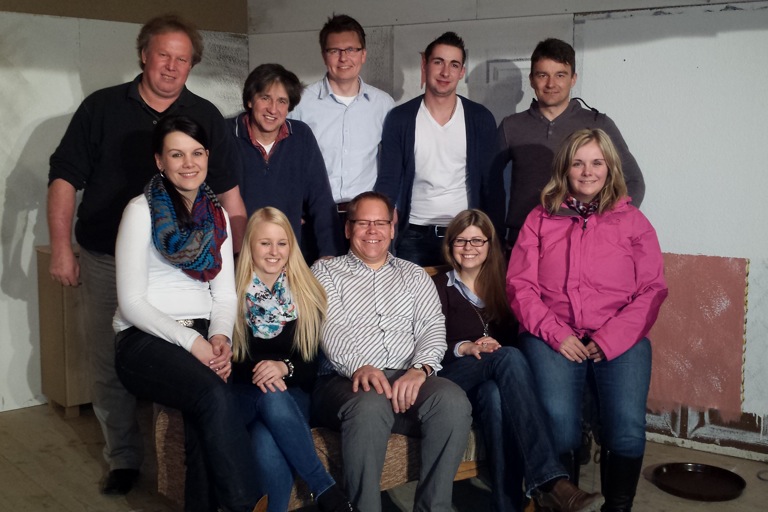 Das Theaterteam: Stefanie Breu (vorne, von links), Simone Heckmaier, Martin Kraft, Veronika Holzmair, Tanja Ehrmaier sowie Kurt Riedl (hinten, von links), Anton Rannertshauser, Thomas Mayer, Korbinian Stampfl, Anton Neumaier.