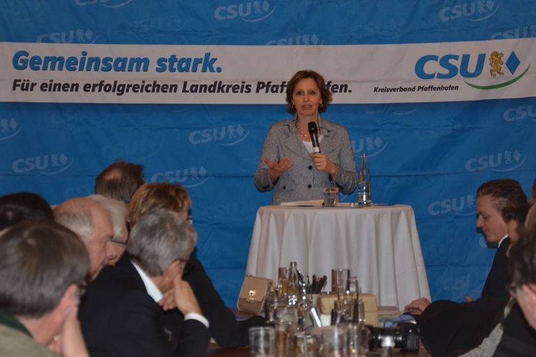 Haderthauer warb für die Reform des Länderfinanzausgleichs. Vier Milliarden Euro zahle Bayern im Jahr, davon gingen drei Milliarden alleine nach Berlin. „So langsam erwerben wir diese Stadt.“ Sie redete dem Schuldenabbau das Wort. Die künftigen Generationen hätten ohnehin viel zu schultern, da wolle man nicht auch noch Schulden hinterlassen, betonte Haderthauer.