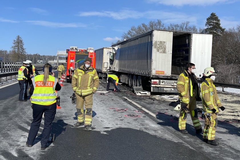 Münchner übersah Stau-Ende und krachte ins Heck eines anderen Sattelzugs. Autobahn zeitweise komplett gesperrt.