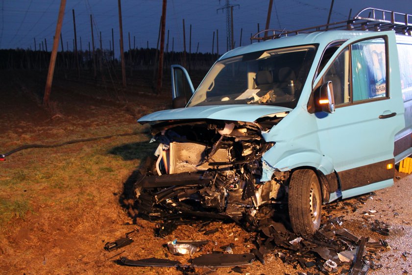 (ty/zel) Ein heftiger Verkehrsunfall auf der Kreisstraße PAF10 in der Nähe von Wolnzach hat am heutigen Morgen zwei Verletzte gefordert. Ein 20-Jähriger aus dem Gemeinde-Bereich von Gerolsbach geriet mit seinem BMW bei Glätte ins Schleudern und krachte letztlich frontal gegen einen entgegenkommenden Lieferwagen. Der junge Mann trug nach Angaben der Polizei bei dem Crash mittelschwere Verletzungen davon, der 49 Jahre alte Kleintransporter-Lenker aus Wolnzach wurde dagegen lediglich leicht verletzt.