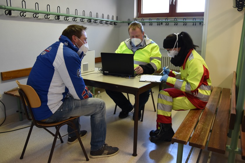 Allein auf diesem Wege sollen täglich 100 Leute eine Impfung erhalten. Heute wurde der Ablauf simuliert. Zwei neue Impf-Zentren in Abensberg und Mainburg.