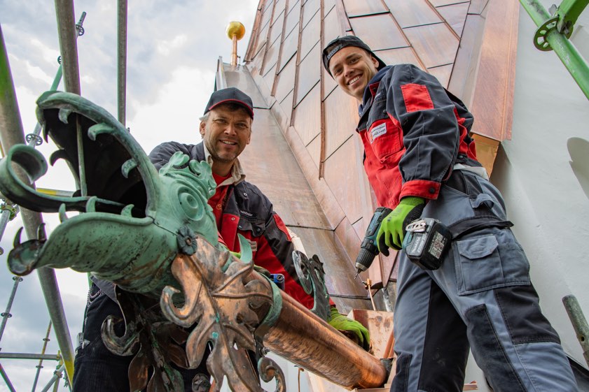 Für Heinzlmeier, der schon mehreren Gotteshäusern in der Region im wahrsten Sinne des Wortes aufs Dach gestiegen ist, war es bisher der höchste Turm. Solche Arbeiten, auf die er sich spezialisiert hat, sind wohl eine Königsdisziplin des Spengler-Handwerks. Gleichwohl ist die Firma aber auch zur Stelle, um für Hausbesitzer normale Spengler-Arbeiten auszuführen – und ein Ausbildungsplatz ab September dieses Jahres ist auch noch zu haben.