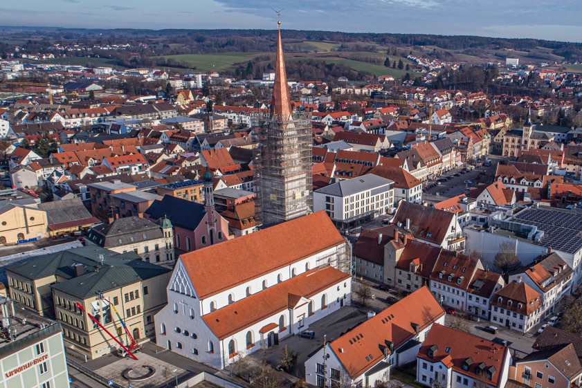 Eine ganz besondere Würdigung hat der Spenglerei- und Dachdecker-Betrieb Heinzlmeier aus Schrobenhausen jetzt erfahren: Ihm wurde der bundesweit ausgeschriebene "Sanierungspreis 2020" in der Kategorie "Metall" verliehen. Bedacht wurde das Unternehmen mit dieser Auszeichnung für die besonders herausfordernde Sanierung des Turms der Stadtpfarrkirche "St. Johannes Baptist" im Herzen von Pfaffenhofen. Ein Video von der Preisverleihung sehen Sie am Ende dieses Beitrags.