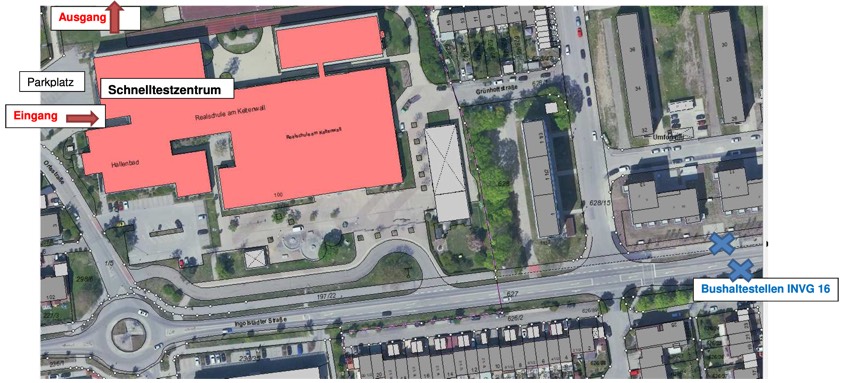 (ty) Das Corona-Schnelltest-Zentrum in Manching zieht um. Wie das Pfaffenhofener Landratsamt heute mitteilte, ist die Einrichtung ab Donnerstag, 18. März, in der Realschul-Turnhalle zu finden. Der Eingang sei direkt vom Hallenbad-Parkplatz (Höhe Ortsstraße 5, siehe Lageplan unten) zu erreichen. Geöffnet ist das Schnelltest-Zentrum dienstags und donnerstags von 17 bis 20 Uhr sowie samstags von 14 bis 17 Uhr. "Oftmals bildet sich bereits vor der Öffnung des Test-Zentrums eine lange Warteschlage", so eine Behörden-Sprecherin. "Diese lässt sich vermeiden, wenn die gesamte Öffnungszeit genutzt wird." Bekanntlich gibt es im Landkreis insgesamt sechs Einrichtungen, in denen man kostenlos einen Corona-Schnelltest machen kann. Wir fassen die wichtigsten Infos – auch zu Standorten und Öffnungszeiten – zusammen.