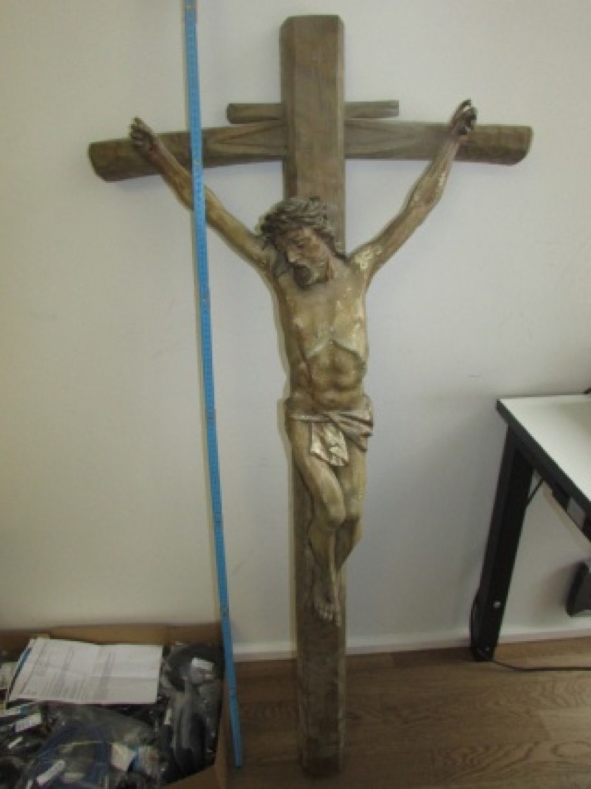 (ty) Von einem wirklich nicht gerade alltäglichen Fund im Gemeinde-Bereich von Münchsmünster hat heute die Geisenfelder Polizeiinspektion berichtet. Am späten Montagnachmittag war gegen 17.30 Uhr in einem Feld beim Ortsteil Auhausen ein stattliches Kruzifix entdeckt worden. Das den Angaben der Beamten zufolge 140 Zentimeter hohe Holzkreuz mit Jesus-Figur habe an einem Wegesrand gelegen.