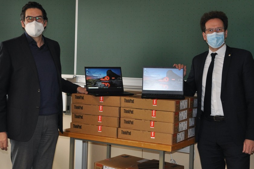 912 mobile Endgeräte sind laut aktueller Mitteilung bereits in den Schulen angekommen, bei weiteren 661 Geräten stehe die Lieferung noch an. Vor kurzem habe das staatliche berufliche Schulzentrum 176 Notebooks für den Unterricht erhalten. Landrat Peter von der Grün übergab die neuen Geräte und nutzte "die Gelegenheit zu einem Erfahrungs-Austausch mit Schul-Leiter Matthias Fischer, der von sehr guten Abläufen im Distanz-Unterricht berichten konnte", heißt es weiter (Foto oben).