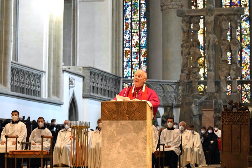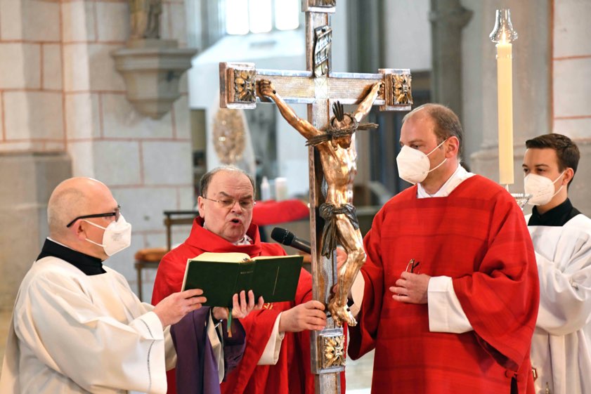 Gerade unter dem Eindruck der vergangenen Monate der Distanz und Unsicherheit, in denen viele Menschen ihre persönliche Corona-Passion erleiden und erleben mussten, rückte Losinger den leidenden Herrn, den "echten Jesus", wie ihn die Liturgie des heutigen Tages zeige, in das Zentrum seiner Ansprache. Erlösung durch das Kreuz sei kein perfekter heller Raum, wie es die Esoterik gerne zeichne. Im Gegenteil: Erlösung durch das Kreuz sei die Rettung aus dem wirklichen Dunkel, aus allem Schmerzenden, Belastenden und Bedrückenden des Lebens. Daher empfahl er den Gläubigen: "Sie brauchen das Kreuz Jesu im Meditationsraum ihres Lebens, weil sie darin mit ihrem Lebens-Kreuz am besten aufgehoben und geborgen sind. Das ist die Botschaft des Karfreitags, die unser Leben letztlich hell macht. Der liebende Blick des Erlösers, der tröstet und befreit."