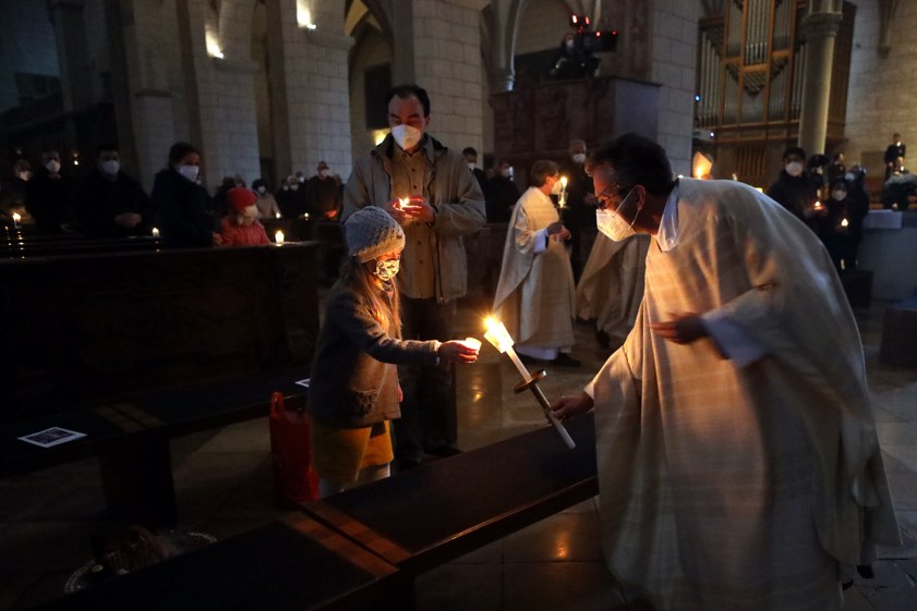 Verteilung des Osterlichts im Hohen Dom.