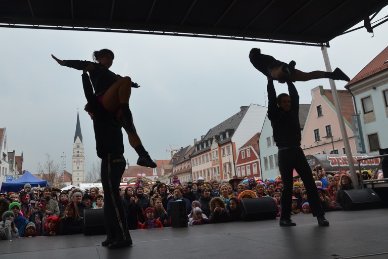 (zel) Pfaffenhofen lässt es zum Faschings-Endspurt heute in der City noch einmal richtig krachen. Ein paar tausend Maschkerer bevölkern derzeit die Innenstadt und haben vor allem am Hauptplatz, wo das traditionelle Faschingstreiben steigt, viel Spaß. Verschiedene Gruppen und Garden traten bereits verteilt über den ganzen Nachmittag auf der eigens aufgestellten Bühne auf und bekamen für ihre Tanz- und Showeinlagen viel Applaus.