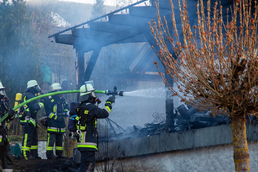 Laut Polizei war der Brand an dem Einfamilienhaus "Am Schlossberg" gegen 18.30 Uhr gemeldet worden. Neben der Polizei und dem Rettungsdienst rückten daraufhin rund 120 Einsatzkräfte von Feuerwehren aus der Region an. Das Feuer habe von einer Terrassen- beziehungsweise Garagen-Überdachung auch auf das Haus übergegriffen, ehe es gelöscht worden sei. "Mehrere Räume wurden durch den Brand schwer in Mitleidenschaft gezogen, wodurch das Haus nicht mehr bewohnt werden kann", so ein Polizei-Sprecher am heutigen Nachmittag.