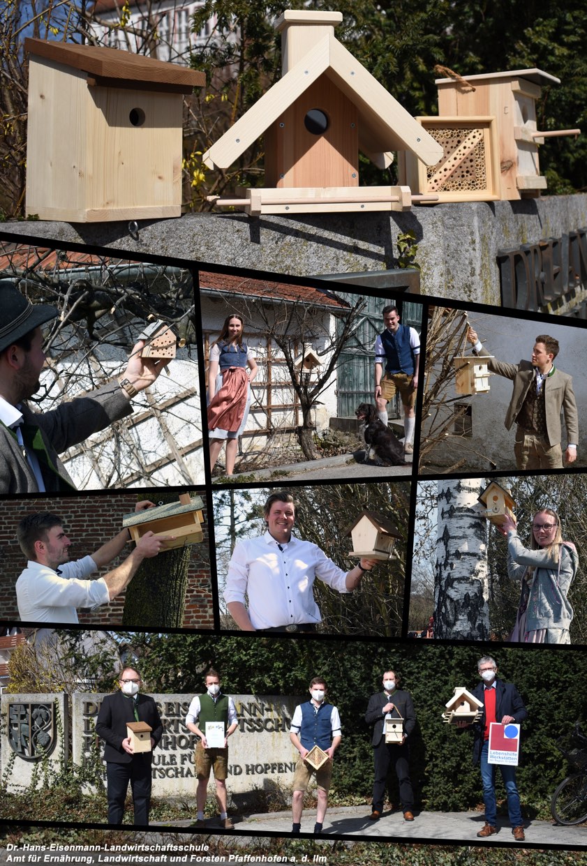 (ty) Studierende von der Dr.-Hans-Eisenmann-Landwirtschafts-Schule in Pfaffenhofen hatten – wie berichtet – beim bayernweiten Biodiversitäts-Wettbewerb "Erzeugung gestalten, Arten erhalten" für Land- und Hauswirtschafts-Schulen mit einem Rebhuhn-Projekt die Goldmedaille errungen und sich damit 1200 Euro gesichert. "Jetzt haben die jungen Männer und Frauen mit dem gewonnenen Preisgeld einen weiteren Beitrag für mehr Artenvielfalt geleistet", wie das Amt für Ernährung, Landwirtschaft und Forsten (AELF) aus Pfaffenhofen heute mitteilte: Aus den Lebenshilfe-Werkstätten in Ingolstadt seien Nistkästen und Insekten-Hotels beschafft worden, die dort von Menschen mit Behinderung gebaut wurden.