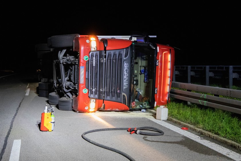 Laut Schilderung der Ingolstädter Verkehrspolizei-Inspektion geriet der mit 14 Tonnen Tierfutter beladene Lastwagen ins Schleudern und touchierte daraufhin zunächst die linke Leitplanke. "Im weiteren Verlauf kippte der Lastwagen auf die Fahrerseite und blieb auf dem linken Fahrstreifen liegen", so ein Polizei-Sprecher. Ersthelfer seien dem Lkw-Fahrer beim Verlassen seines Führerhauses behilflich gewesen. Der 62-Jährige habe glücklicherweise lediglich leichte Verletzungen davongetragen; er sei zur weiteren Untersuchung in ein Krankenhaus gebracht worden.