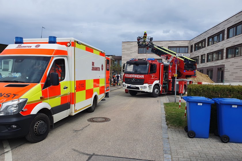 31-Jähriger bei Betriebsunfall in Bad Abbach mittelschwer verletzt. Er nutzte eine Fluchttür, doch die Außentreppe war noch nicht angebracht.