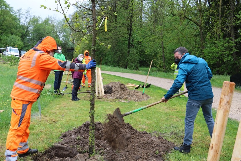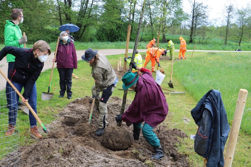 Für die Vor- und Nachbereitung der Pflanz-Aktion vor Ort zeichne Mario Dietrich verantwortlich, der oberste Gärtner bei den Pfaffenhofener Stadtwerken. Insgesamt sieben Akteure haben laut Mayer jeweils einen Baum finanziert und diesen gestern in die Erde gesetzt: die Pfaffenhofener Kreisgruppe des "Bund Naturschutz" (BN), die hiesige Kreisgruppe des "Landesbunds für Vogelschutz (LBV), das Aktions-Bündnis "Pfaffenhofen an der Ilm summt! – Wir tun was für Bienen!", der Neue Pfaffenhofener Kunstverein, die Grundschule Niederscheyern, die "Soziale Skulptur Hallertauer" und – für die Stadt – Bürgermeister Thomas Herker (SPD).