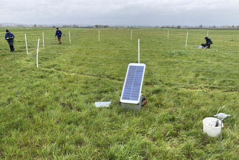"War ein Gelege entdeckt, mussten die Eier vermessen, gewogen und der Schlupf-Termin bestimmt werden", erklärt eine Sprecherin des Landratsamts. "Im gleichen Arbeitsgang wurde durch ehrenamtliche Helfer ein Zaun um das Gelege gezogen, der zumindest während der Brutzeit vor Feinden schützt." (Foto oben) Sie erklärt: "Im letzten Mai-Drittel schlüpfen die ersten Küken und dann heißt es schnell sein." Der Zaun müsse abgebaut und die Jungen mit einem Sender ausgestattet werden, bevor sie das Nest verlassen. "Dadurch lassen sich die Jungtiere später in der Wiese wiederfinden und können so vor den Risiken der Mahd bewahrt werden."